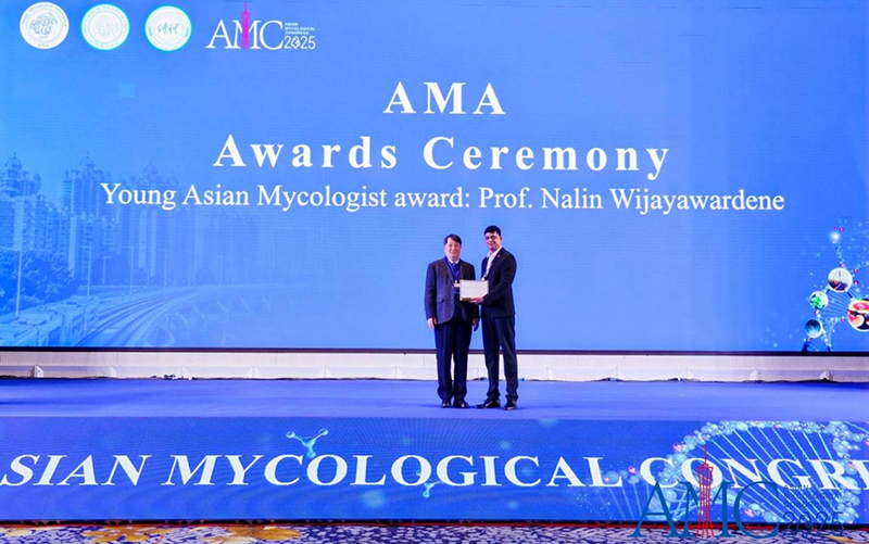 2025年11月23日,亚洲菌物学大会在广州召开,曲靖师范学院生物与食品工程学院斯里兰卡籍博士Nalin Wijayawardene教授凭借其在菌物学领域的突出贡献,荣获"亚洲青年菌物学家奖"。这是该奖项设立以来在华外籍青年真菌学者首次获此殊荣。